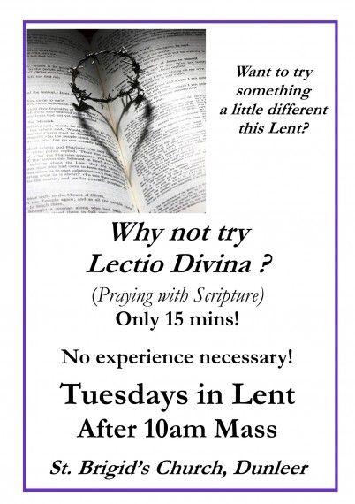 Lectio Divina (guided prayer with Scripture) in St. Brigid’s Church after 10am Mass (begins Tuesday February 24th)