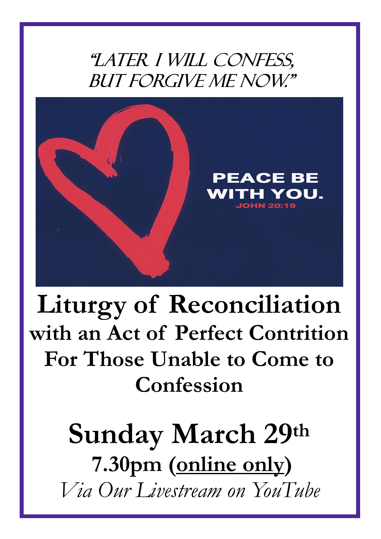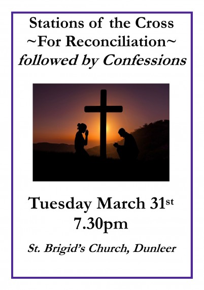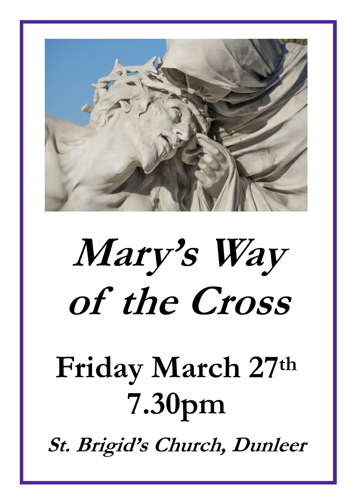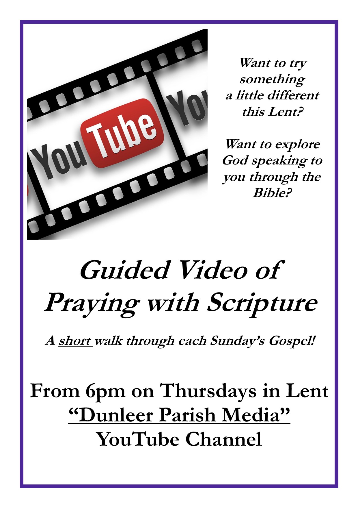 Pre-recorded guided prayer with Scripture video posted to parish YouTube channel – “Dunleer Parish Media” (begins February 26th).