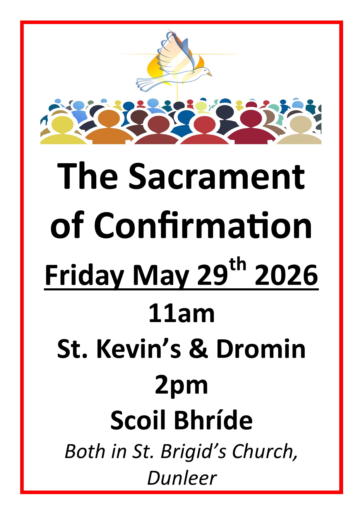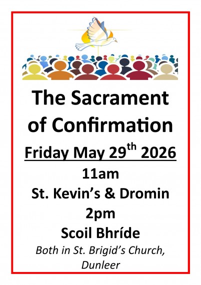 Due to an increase in class sizes, St. Kevin’s and Dromin will come together for one celebration and Scoil Bhríde for the other. Both celebrations will take place in St. Brigid’s Church, Dunleer and it is hoped they will be celebrated by one of our bishops.